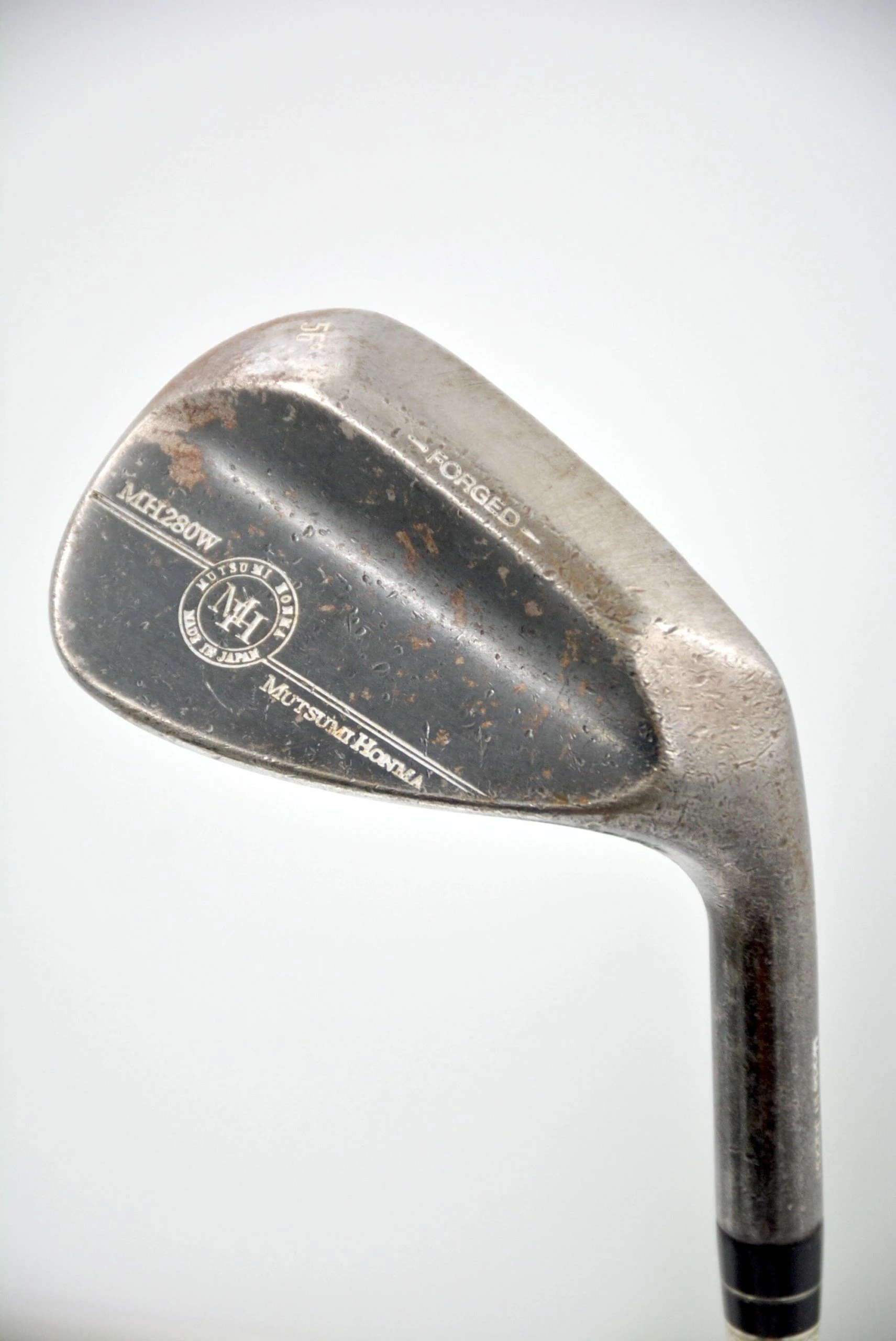 Wedge is in fair condition (moderate cosmetic wear, but nothing that affects performance in any way.) Shaft is stock Honma in Wedge Flex with a Tacki-Mac grip. Loft is 56 Degrees.