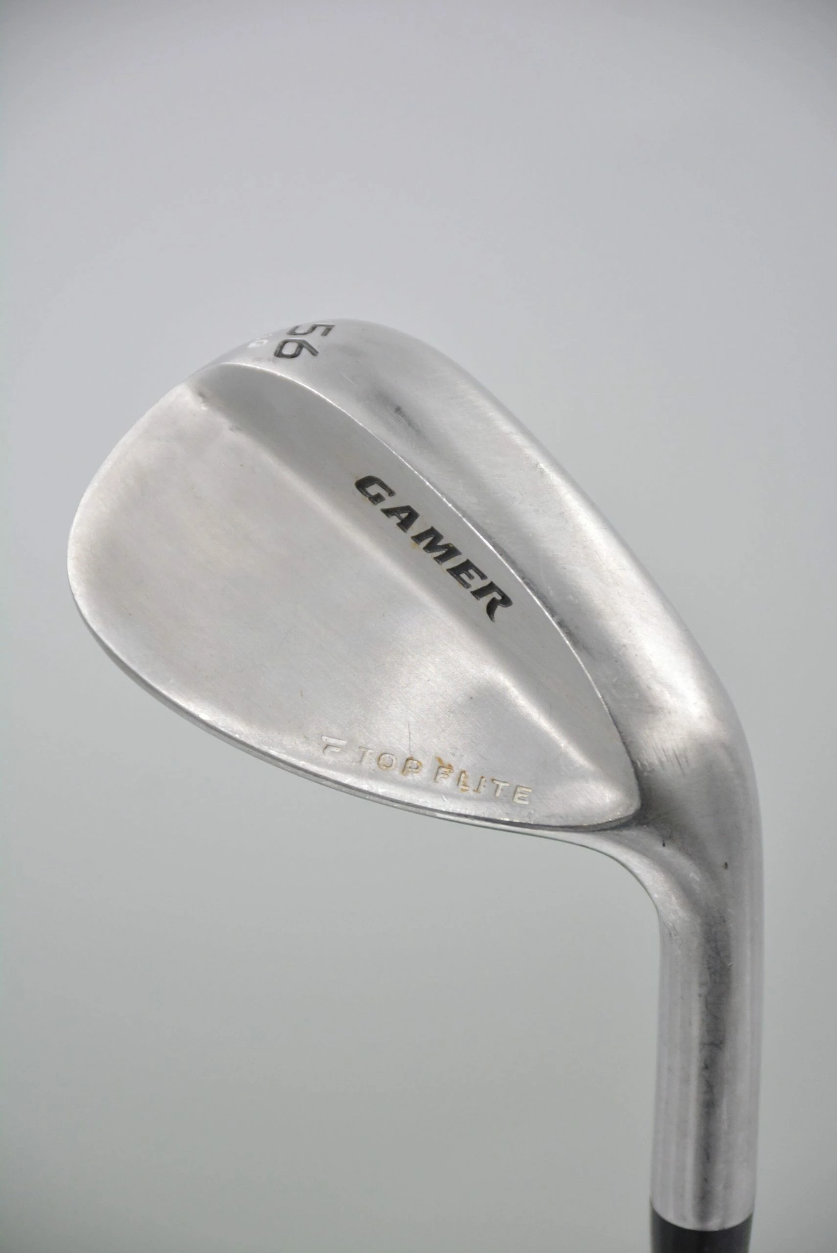 Wedge is in fair condition (moderate cosmetic wear, but nothing that affects performance in any way.) Shaft is stock TopFlite in Wedge Flex with a Golf Pride Tour Velvet grip. Loft is 56 Degrees. Bounce is 10 degrees.